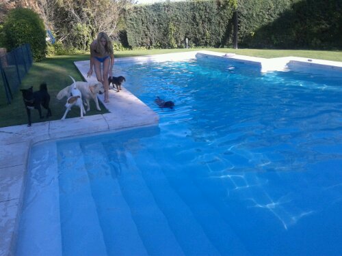 Han venido labradores que disfrutan de la piscina