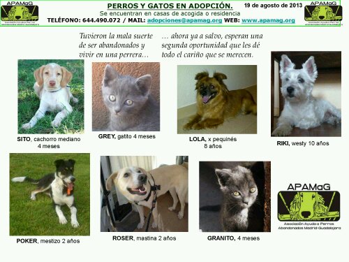 Más abajo los carteles de apamag http://www.apamag.org con todos los animales abandonados!!