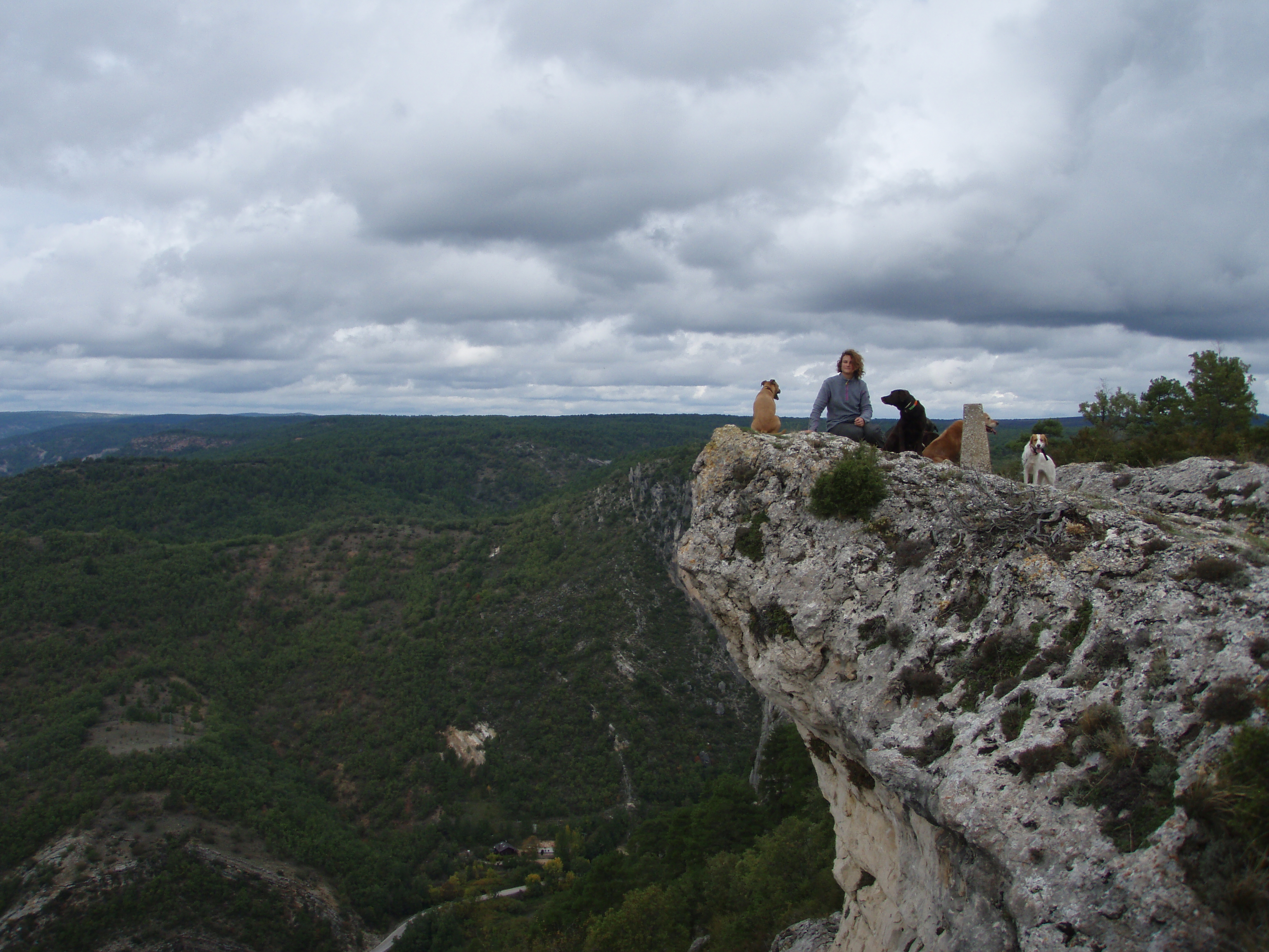 1. Hola Paula, de nuevo yo, Sara, la perrita feliz. ¡¡¡Estás loca!!! A mí me tendrías que haber subido a rastras a esa roca. ¡Qué vértigo! Y tus perros, tan tranquilos, como si no pasara nada. Seguro que ninguno miró hacia abajo, o es que confían tanto en ti que se les va el miedo. Es broma, la foto preciosa y tú tan guapa como siempre. Besos perrunos