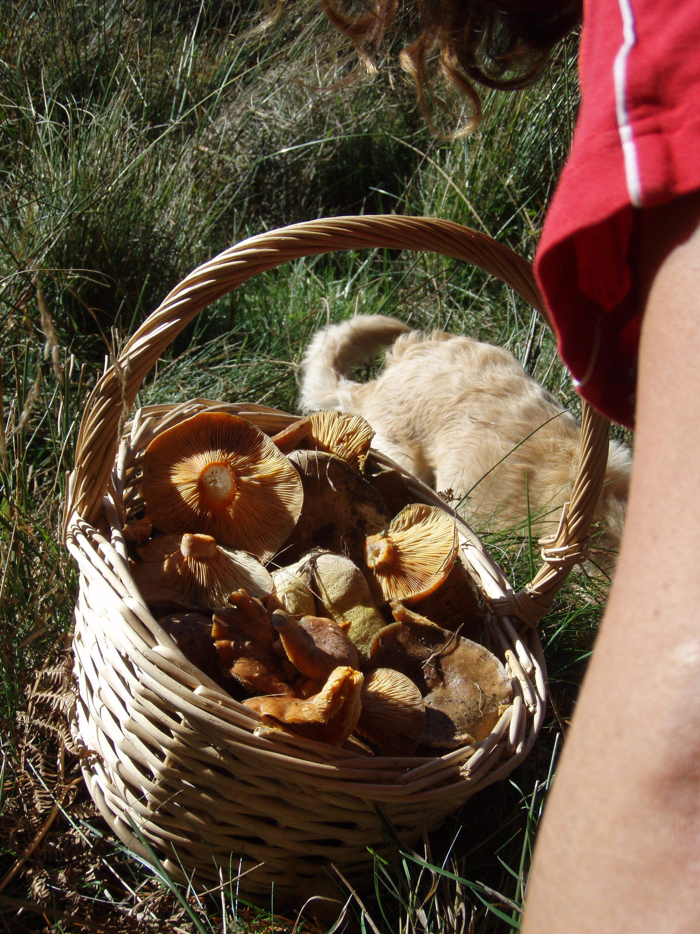 Mirad cómo llené la cesta… reconocéis alguna? Pues cogimos boletus, níscalos y macrolepiotas oleeee!