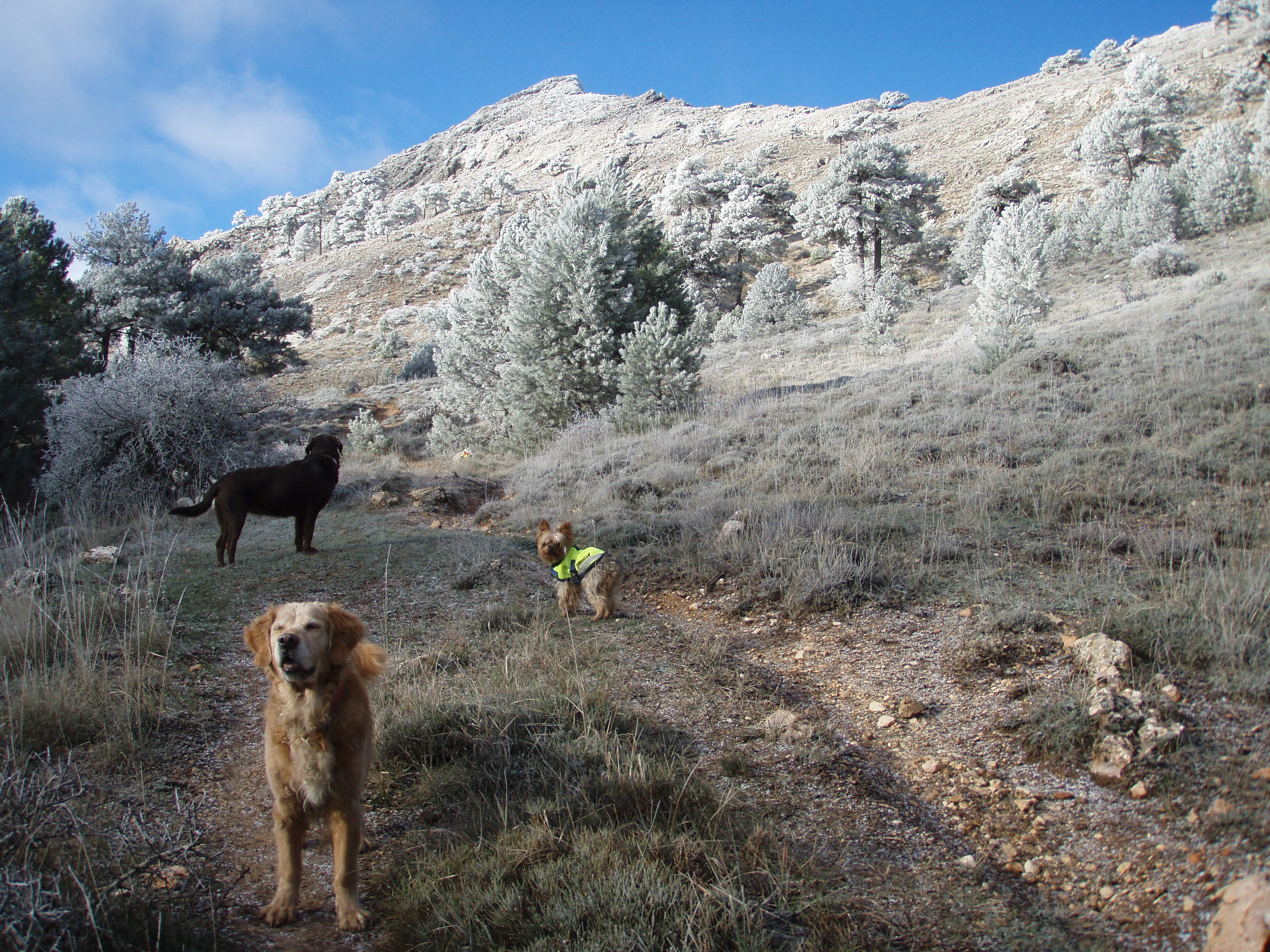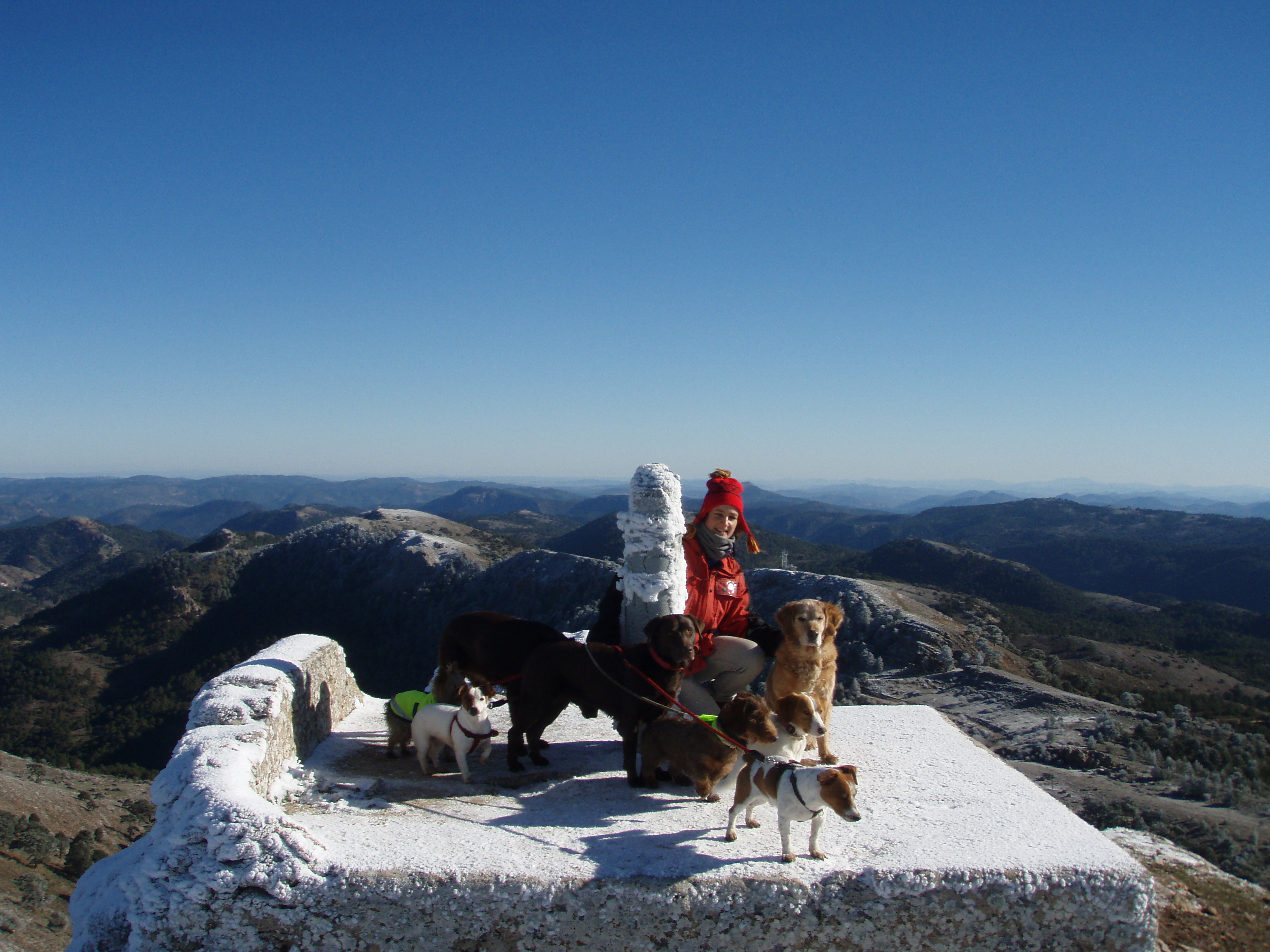 El pico Almenara es una montaña de la Sierra de Alcaraz. Toma importancia por su visibilidad desde muchos kilómetros y por ser el punto más alto de esta sierra. Y es ese piquito que veis encima de los perros.