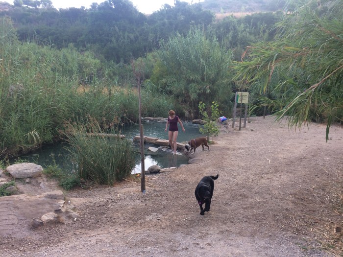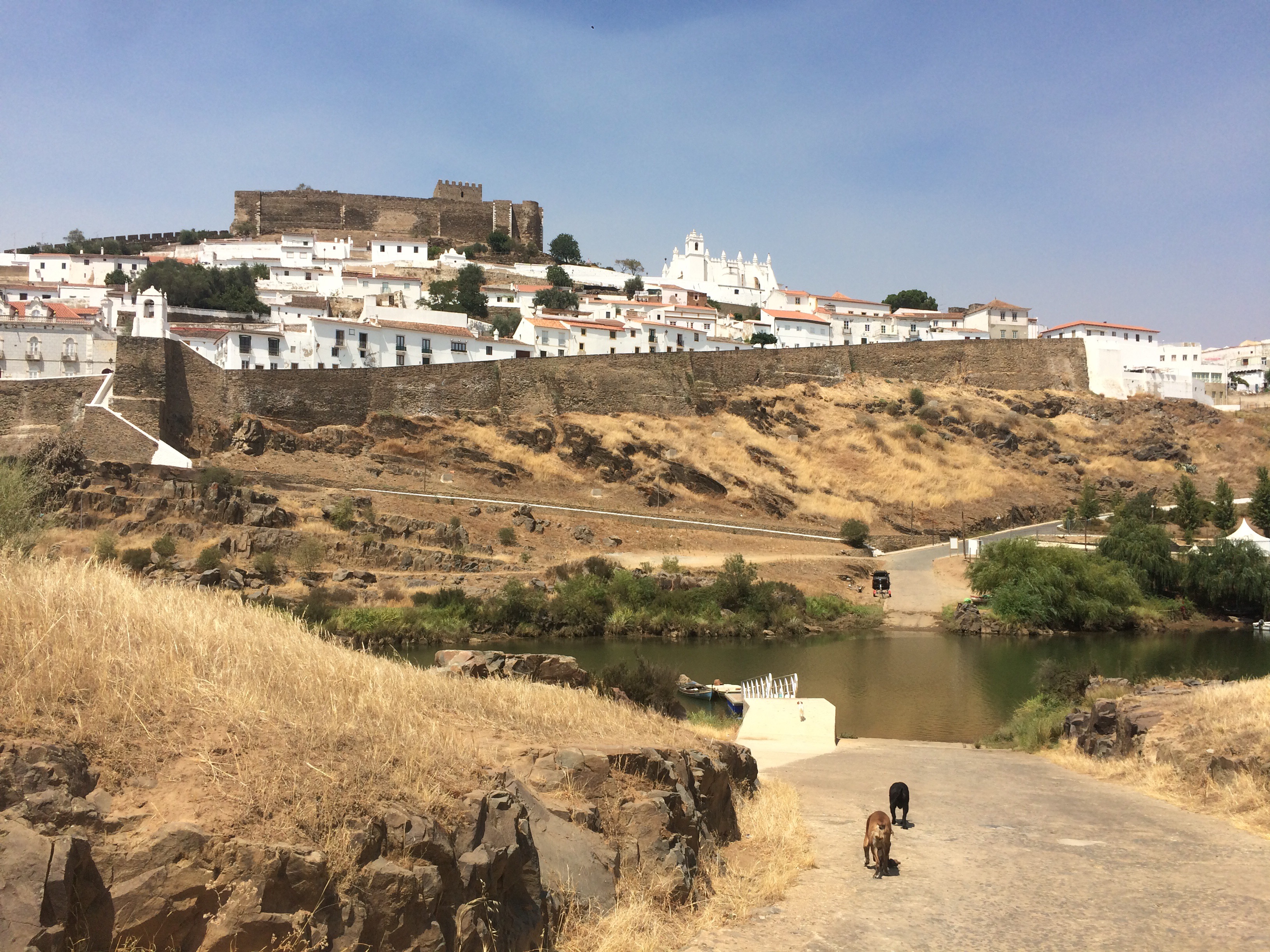 En el camino de vuelta hacia Madrid en el pueblo de Mertola, chapuzón perruno