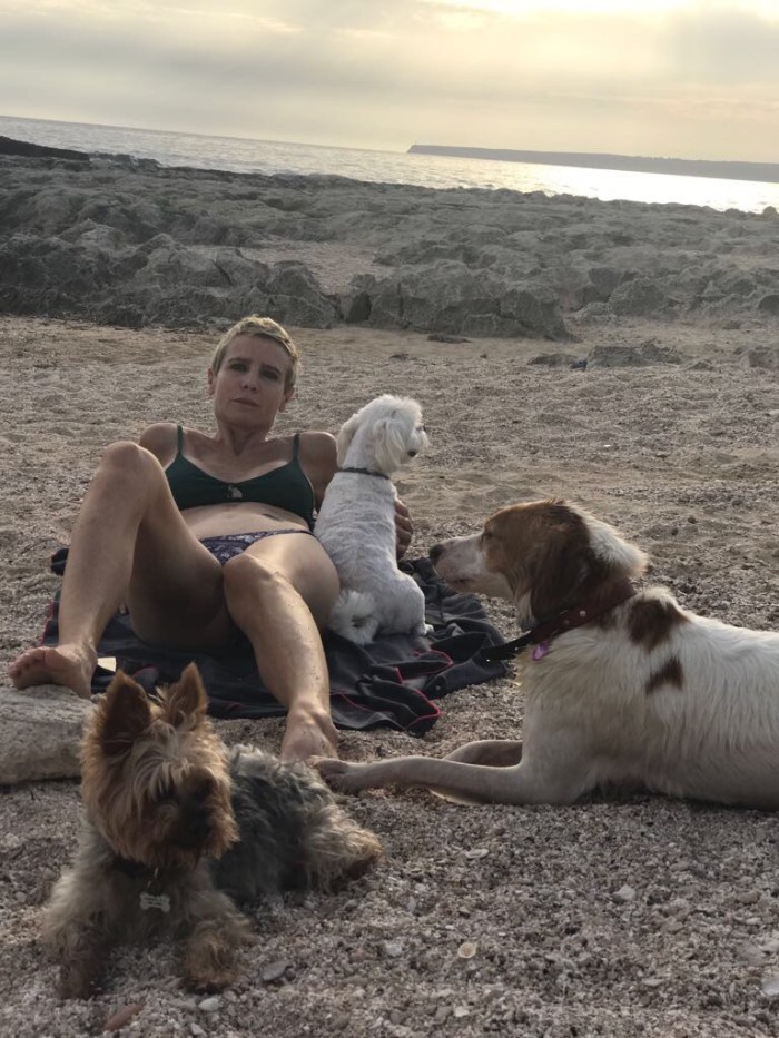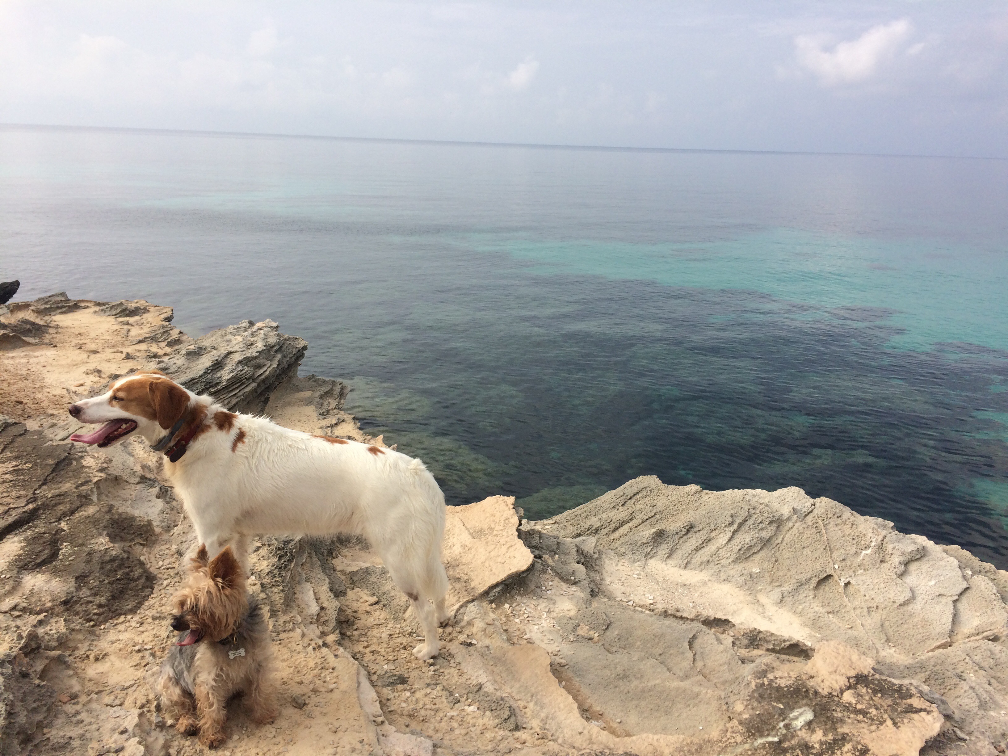 Flor y Teddy me acompañan en mi paseo y baño mañanero 🙂
