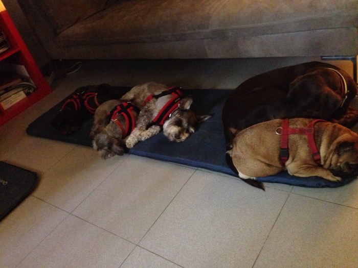Perros que solo quieren dormir! Después de la excursión a pleno rendimiento corriendo por lagunas y nadando en vegetación 🙂